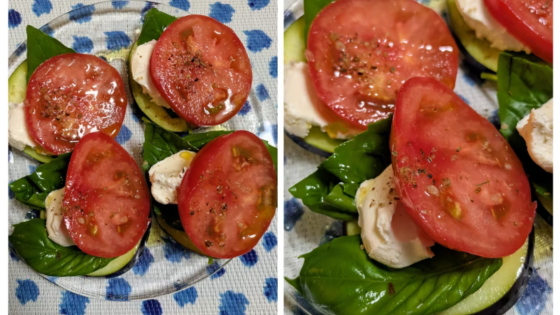 スーパーで手に入らない水茄子を楽しみにしていました。 早速、トマト、大葉をかさねて、カプレーゼ風に食べました。タレは、ポン酢、胡麻油をベースにしました。チーズを挟んでもよかったかも。 なすの瑞々しさを堪能しました。 写真にはありませんが、糠漬けも一緒にいただきました。あっという間になくなってしまい、写真はないですが、家族皆で大変満足しました。早くもリピしそうな感じです。 ごちそうさまでした。
